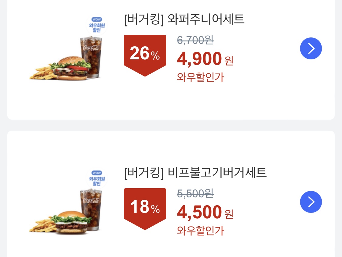- [26% 할인] 와퍼주니어 세트